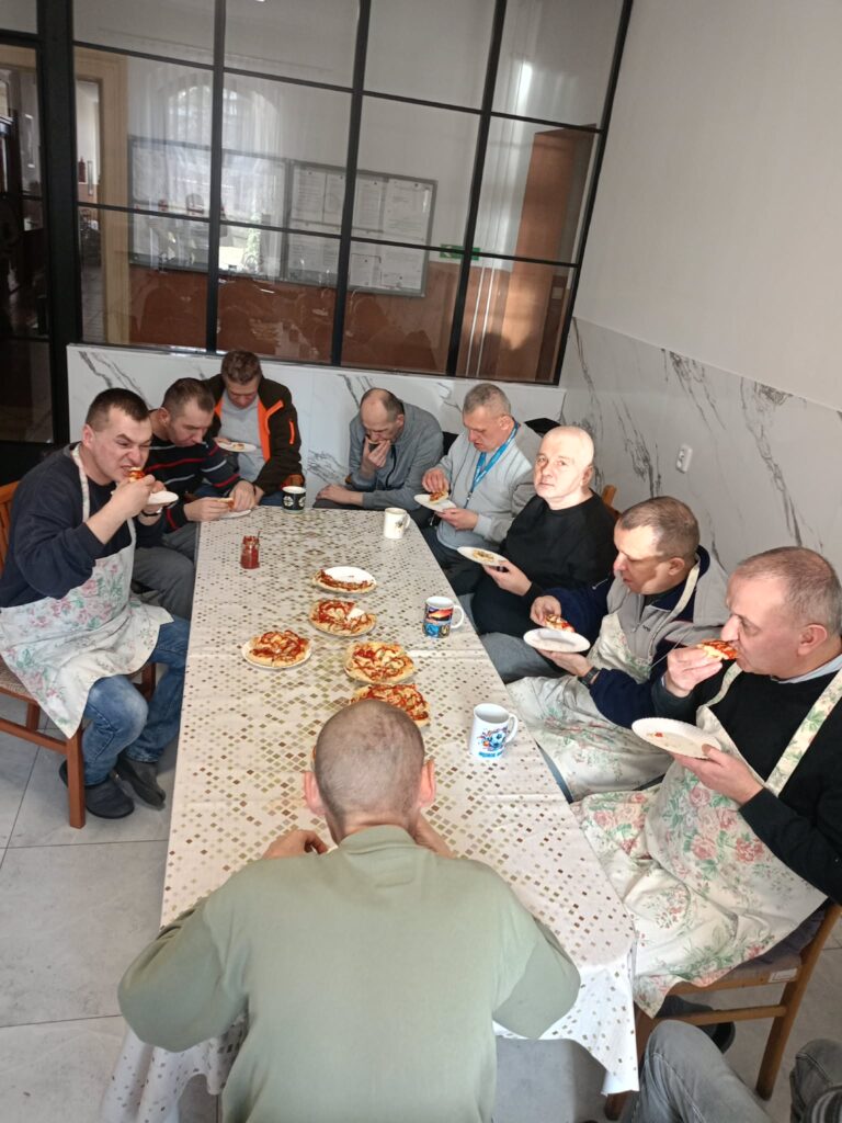 W dniu 12.03 podczas zajęć kulinarnych grupa druga przygotowywała pizzę przy wsparciu instruktor terapii zajęciowej Moniki. Zajęcia rozpoczęły się od krótkiego omówienia planu pracy oraz zasad bezpieczeństwa w kuchni. Następnie uczestnicy przygotowali stanowiska pracy oraz potrzebne składniki do przygotowania pizzy. W pierwszej kolejności grupa zajęła się przygotowaniem składników .Uczestnicy kroili cebulę, paprykę