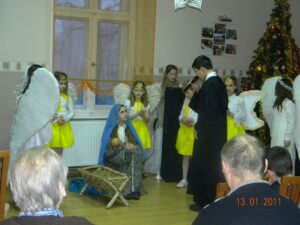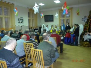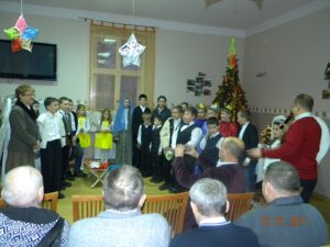 W dniu 13.01. 2011r. o godz.15:30 w świetlicy naszego Domu gościliśmy uczniów Szkoły Podstawowej z Pęckowa. Uczniowie przyjechali do nas z przedstawieniem Jasełek. Grupa liczyła 25 osób. Przedstawiona historia była o narodzinach Jezusa, ale z nowoczesnym ukazaniem charakterów ludzi w dzisiejszych czasach. Mieszkańcy podziękowali dzieciom za wspaniały występ długimi brawami. Mali aktorzy otrzymali w prezencie od Domu upominek wykonany w pracowni terapii zajęciowej przez mieszkańców. Mamy nadzieję na następne tak udane spotkanie.