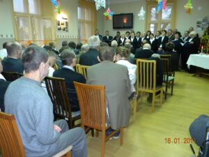 W dniu 16 stycznia 2011r., w Domu gościliśmy księdza Andrzeja Drobińskiego, który przyszedł z wizytą duszpasterską (kolędą). Duszpasterz pobłogosławił mieszkańców, którzy licznie przybyli do świetlicy. Podarował również obrazki przedstawiające śp. Jana Pawła II. Spotkanie uświetnił występ zaprzyjaźnionego chóru „MILENIUM”, który przyjechał do nas z Wronek. Grupa chórzystów odśpiewała nam kolędy te powszechnie znane min. „Bóg się rodzi.”, „Przybieżeli do Betlejem.”, „Pójdźmy wszyscy do stajenki”, jak i pieśni mniej znane.